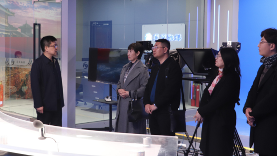 会后,在孙传强主任的引导下,烟台理工学院代表师生代表参观了蓬莱区融媒体中心演播室、蓬莱区融媒体中心指挥调度平台,并就学生实习、媒体融合、行业发展等方面进行了交流和探讨。