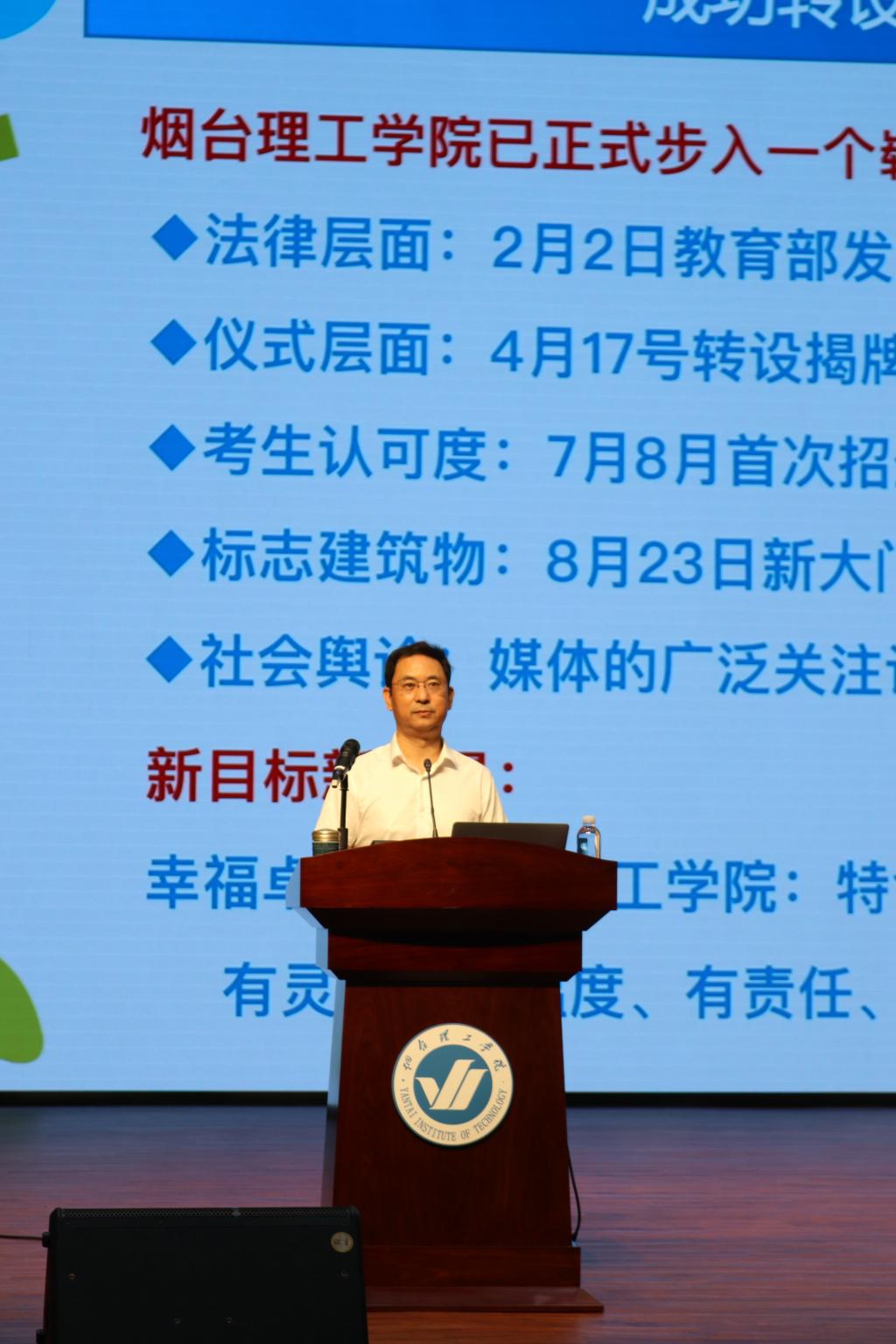 于光辉校长在讲话中表示,我校凭借着多年来扎实的办学基础、良好的社会声誉、科学的师资管理、宜人的滨海环境、可持续办学理念等众多优势不断增强办学实力,在党建、教学、科研、育人、创新创业等多个方面取得了丰硕成果,赢得了社会各界的广泛关注和好评。转设成功后,烟台理工学院已正式步入高质量发展的崭新阶段!