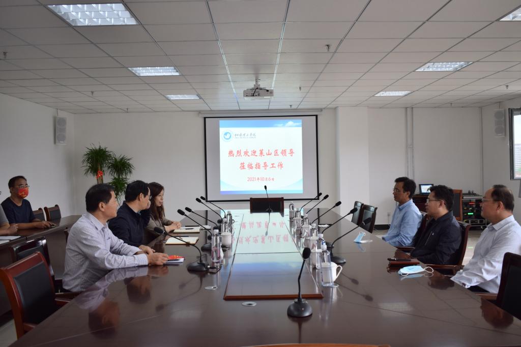 10月6日上午,莱山区领导蒋海华一行来我校调研疫情管控措施。校长于光辉,副校长张仁杰,校长助理莫红菊,相关职能负责人在实验大楼六楼会议室接待来访。