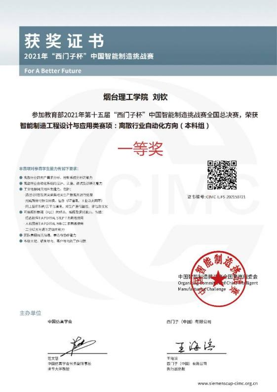 2021年11月8日至13日,第十五届“西门子杯”中国智能制造挑战赛总决赛落下帷幕。人工智能学院李超副教授带领胡海亮、韩弘毅、刘钦三名同学组成的AG队,荣获全国总决赛离散行业自动化方向一等奖。同时,李超副教授荣获“全国优秀指导教师”荣誉称号。