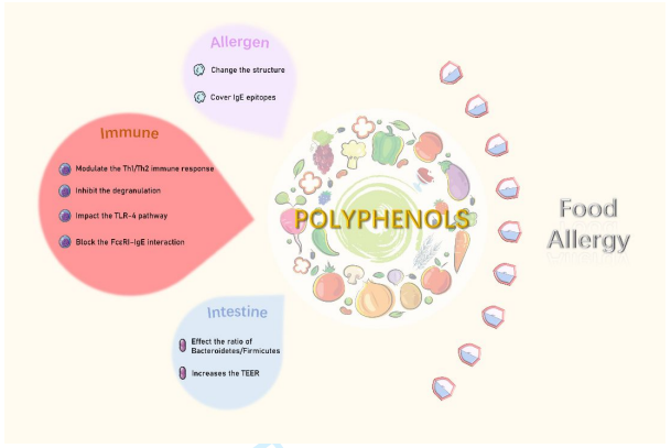 该文章综合介绍了多酚类物质作为植物中的一种天然物质,具有较高程度的安全性。强调多酚对食物过敏的保护作用,引用归纳了其在过敏原结合、免疫系统和肠道菌群的作用机制原理;总结了多酚类物质在抗食物过敏领域的具体作用,并对未来的研究指明了方向。