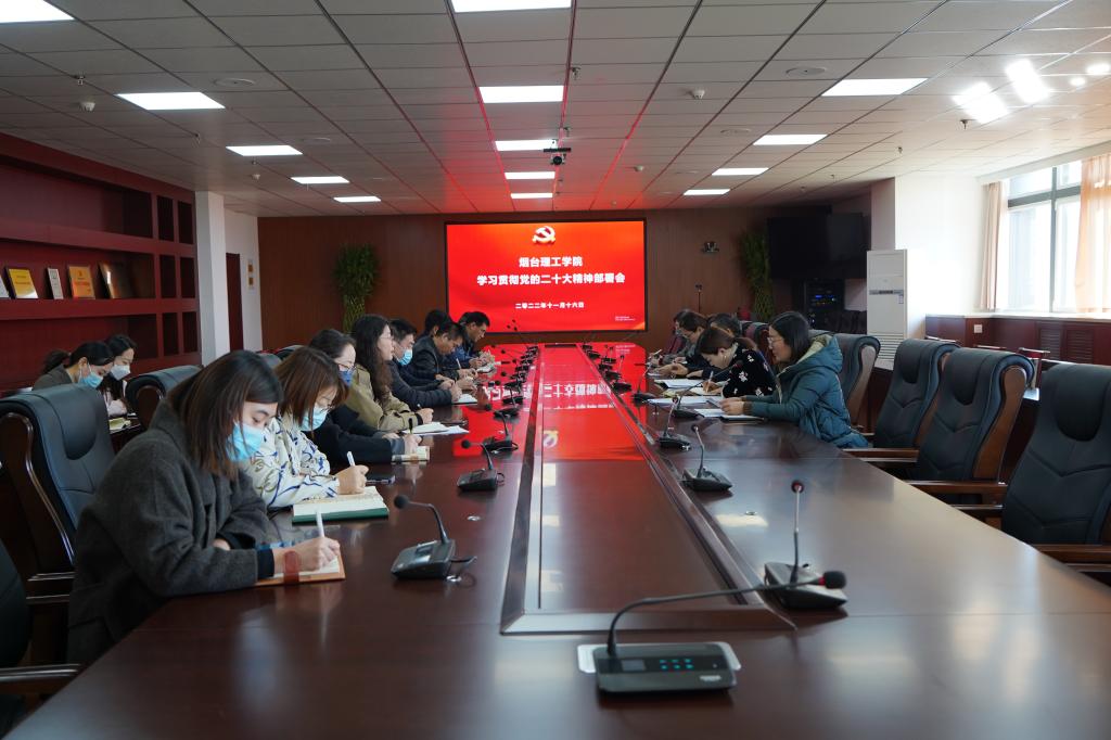 党委书记盛国军强调,深入学习宣传贯彻党的二十大精神是当前和今后一个时期的首要政治任务,全校各级党组织要提高政治站位,把学习宣传贯彻党的二十大精神摆上重要位置、纳入议事日程,要以高度的责任感和使命感做好学习贯彻工作。一是各级党组织在组织党员原原本本、逐字逐句通读党的二十大报告和党章的基础上,要突出重点、抓住关键,带着目标学,党员干部要带头学,广大师生积极踊跃学,迅速在全校掀起学习热潮;二是立足职能职责、聚焦主责主业,专任教师要紧密相结合教育教学发展前景,结合学科建设开展学习讨论,注重把践行社会主义核心价值观和提高学生文明素养与学习党的二十大精神结合起来,真正在理解中学习,在学习中应用,扎实做到入脑入心,走深走实;三是活动形式要丰富,要贴和师生实际,组织开展好面向全体党员、师生员工的多角度、多形式、分层次、全覆盖学习培训,推动党的二十大精神进校园、进课堂、进师生头脑,切实把党的二十大精神扎扎实实、不折不扣贯彻落实下去,确保党的二十大精神在烟台理工学院落地生根、见到实效。