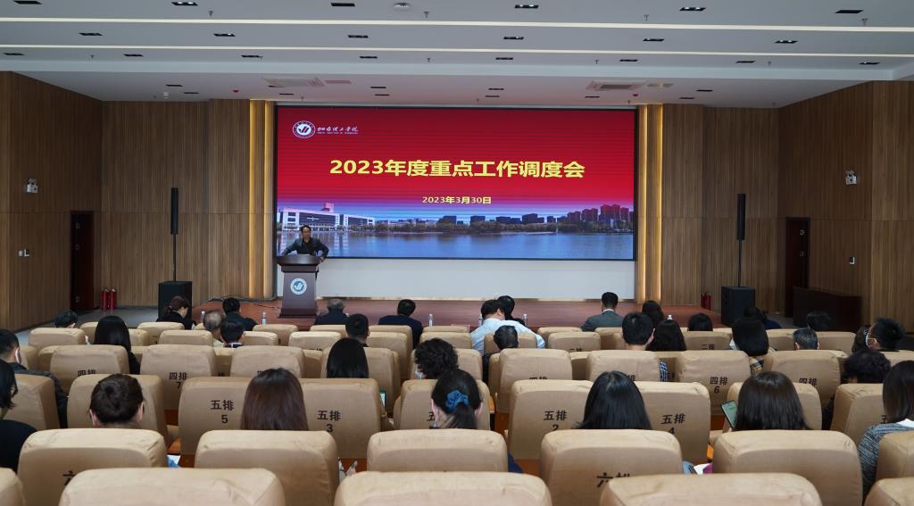 3月30日,学校在综合楼六楼报告厅召开2023年度重点工作调度会。学校领导班子成员出席会议,各二级学院党政负责人及各职能部门负责人参加会议。