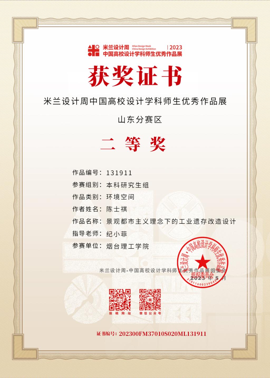 近日,第七届“米兰设计周——中国高校设计学科师生优秀作品展”全国决赛评选结果公布,建筑工程学院获国赛奖3项,其中邹金益、张檬元老师指导的视觉传达设计专业学生(孙彦君、李文轩、薛法磊)团队作品获一等奖2项;纪小菲老师指导的环境设计专业学生(陈士祺)景观设计作品获三等奖1项。