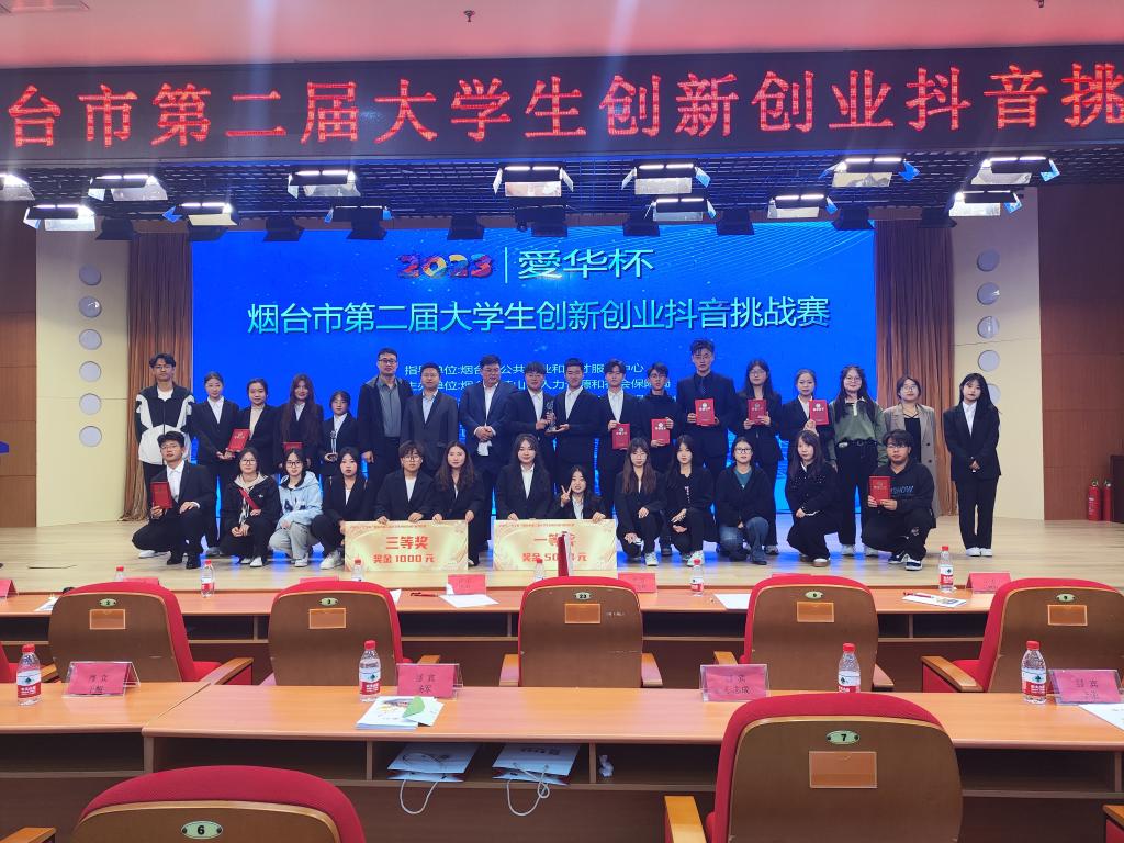 11月5日“爱华杯”烟台市第二届大学生创新创业抖音挑战赛决赛在山东工商学院学术报告厅举办,我校学生获得一等奖和三等奖一项,在参赛高校中成绩突出。