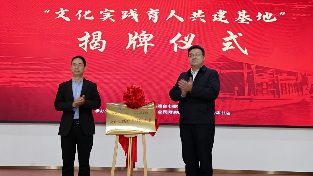 烟台理工学院校长于光辉与山东新华书店集团有限公司烟台分公司党委书记、总经理葛磊共同为文化实践育人共建基地揭牌。双方以阅读推广、文化实践、红色文化传承为重点方向,深化校地资源融合,着力构建集阅读分享、文化交流、实践锻炼于一体的综合育人平台,持续推进书香校园建设,助力青年学生全面成长成才。