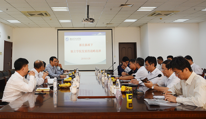 论坛以共同探讨新法新政下独立学院发展的战略选择”为主题,切合了当前独立学院发展亟需探讨的问题。马杰会长介绍了全国独立学院的现状、特色与优势,分析了独立学院在贯彻新法新政时面临的问题,发表了自己的看法和体会。马会长的发言引起了与会领导的热烈讨论,大家各抒己见,从人才培养模式、教育教学改革以及作法和经验等方面,畅谈了对新时代下独立学院如何发展的思考。