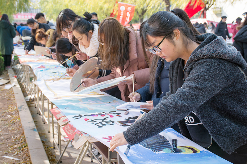 11月25日上午,由院团委主办的社会主义核心价值观百米长卷艺术创作大赛在餐厅前甬道举行,各系积极组织学生参加活动。
