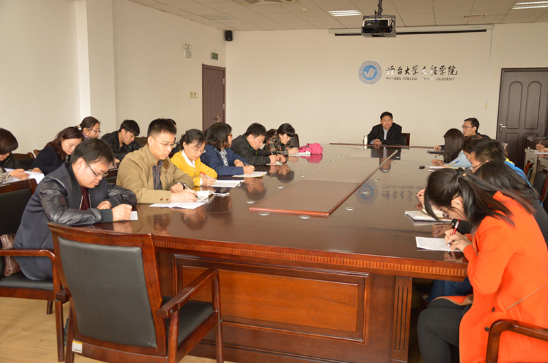 会上,王宪杰部长首先总结了2015年度学院参加各类大赛的获奖情况。2015年我院共有1487人次参加省级以上竞赛,获省级以上奖项共计156项,较往年竞赛成绩有显著提高。其中,国家级一等奖7项,二等奖20项,三等奖34项;省级特等奖2项,省级一等奖20项,二等奖41项,三等奖29项。对于本年度学科竞赛工作,王部长从年度经费预算、竞赛备案、指导老师年度业绩信息报送、学科竞赛奖励办法等方面进行部署,希望各系部竞赛指导老师强化责任落实,提高重视,互融互通,进一步提升我院学生参赛水平。