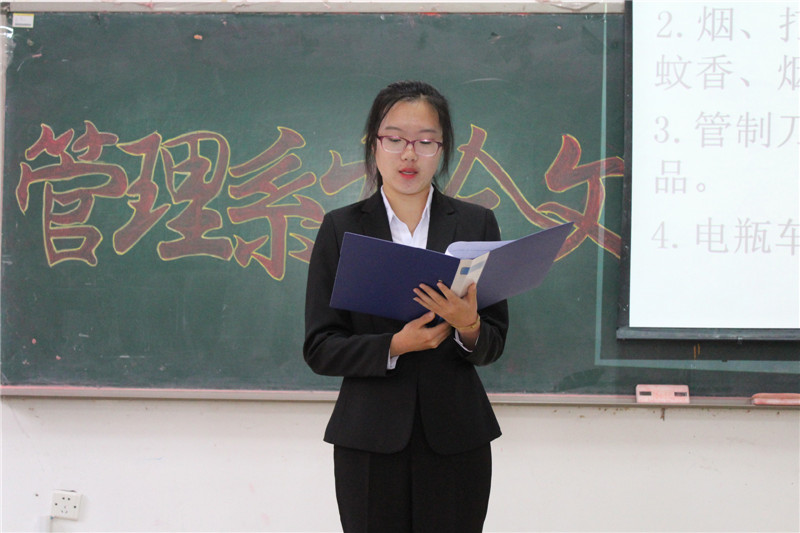 本次会议,旨在通过为卫生成绩优异班级颁发流动红旗的形式,规范同学们的日常行为,调动学生打造良好卫生环境的积极性。主持人结合幻灯片为在场人员详细讲述宿舍内务整理标准、评选标准。据此评比,管1803-2、管1804-1荣获流动红旗。为使在场同学进一步明确社区安全隐患,丛维针对当前宿舍出现的新情况新问题进行总结阐述,他强调宿舍内禁止使用大功率电器、管制刀具、易燃易爆品等违禁物品,指出开展社区卫生服务工作存在的问题与不足,要求同学切实建立监督机制,希望各班级代表充分发挥带头作用,以此次安全文明月为契机,严格遵守社区卫生安全规章制度,强化服务意识,狠抓学生作风建设,积极落实各项安全部署,强化社区卫生和安全环境建设。