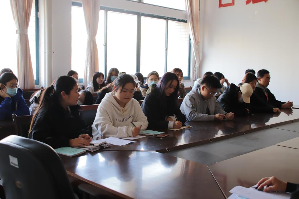 11月10日下午,中文与法律系于一教四楼会议室召开综测及奖助学金评定工作调研会。中文与法律系学生工作负责人王淑霞、17级学生辅导员梁丹出席,各班团支书、贫困生代表和部分学生代表参加了本次会议。