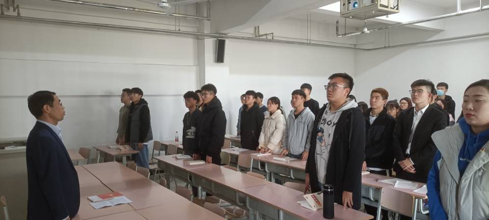党课伊始,全体成员奏唱国歌。高照龙老师以“如何端正入党动机”为主题进行党课培训。高照龙老师从中国共产党的三大历史贡献讲起,回顾了中国共产党的党史历程,指出了对党的正确认识及党员的权利与义务。他强调,入党积极分子要树立正确的入党动机,从身边的点点滴滴做起,以实际行动争取早日入党。姚惠文老师介绍了入党考试要求与纪律,提醒大家不能放松警惕,继续加强学习。入党积极分子房天奇同学表示,作为入党积极分子,应当珍惜党课学习机会,保持入党热情,更好地为人民服务。