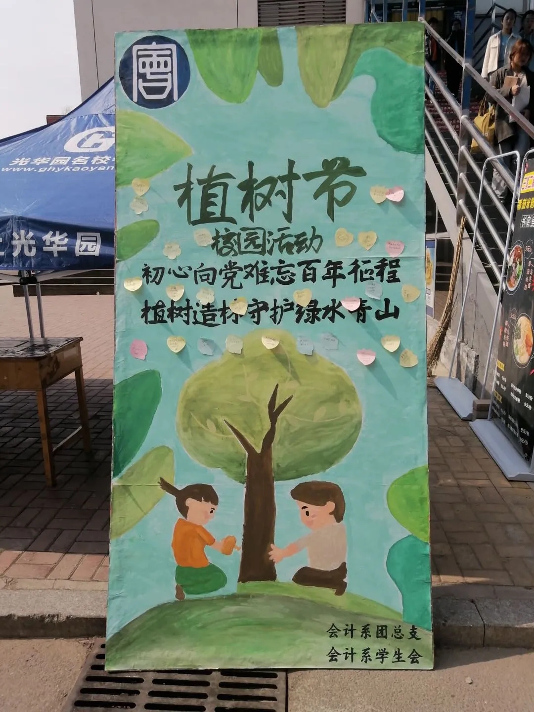为进一步提高全校师生环保意识,激发热爱自然的情感,2021年3月12日,在我国第43个植树节来临之际,我校青年志愿者协会联手会计系团总支实践拓展部开展“初心向党难忘百年征程,植树造林守护绿水青山”活动。