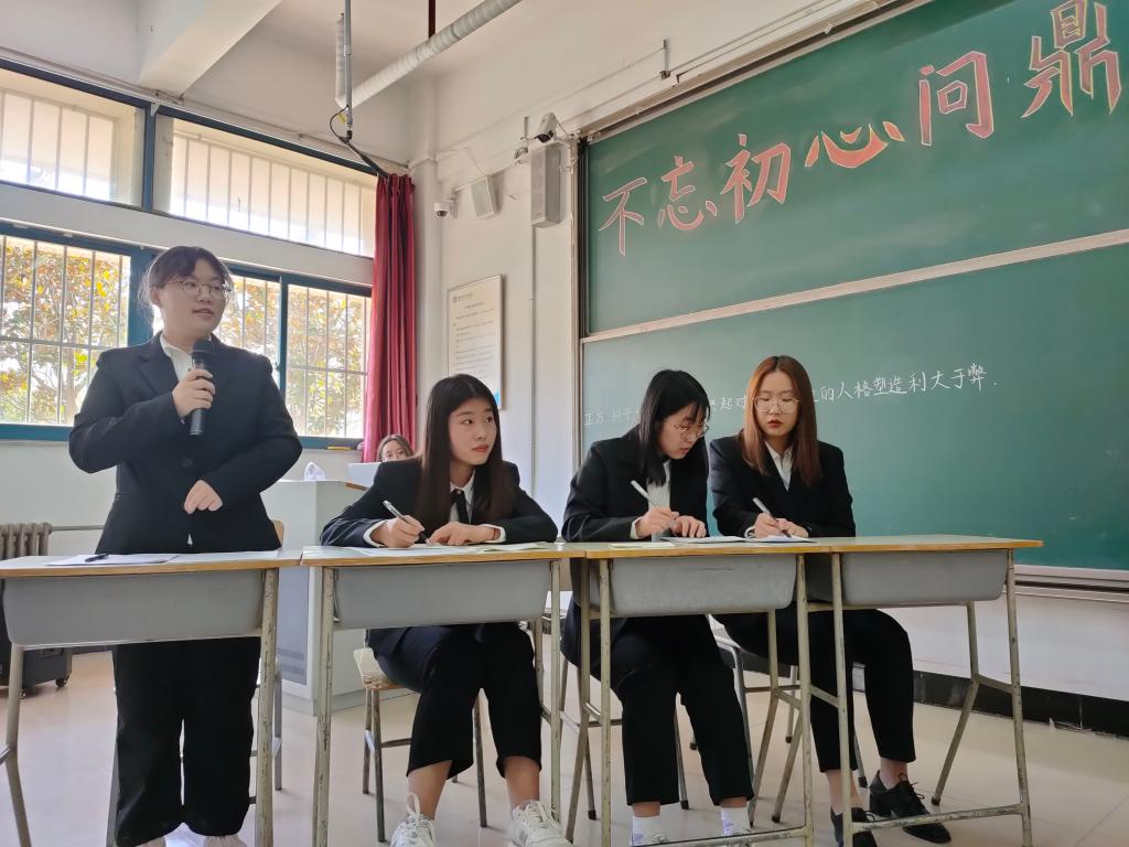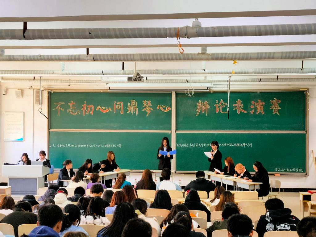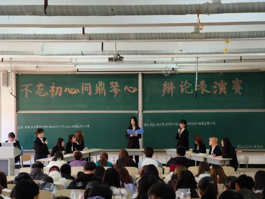 为丰富同学们的课余生活,培养逻辑思考能力和语言表达能力,4月19日下午3点,食品与生物工程学院于一教103举行辩论表演赛,团总支学生副书记张卓婷、科技部部长芮洪伟、学习部部长王楠、组织部部长赵丹婷、辩论队负责人严润泽、优秀辩手陈汝军及20级全体学生参加。