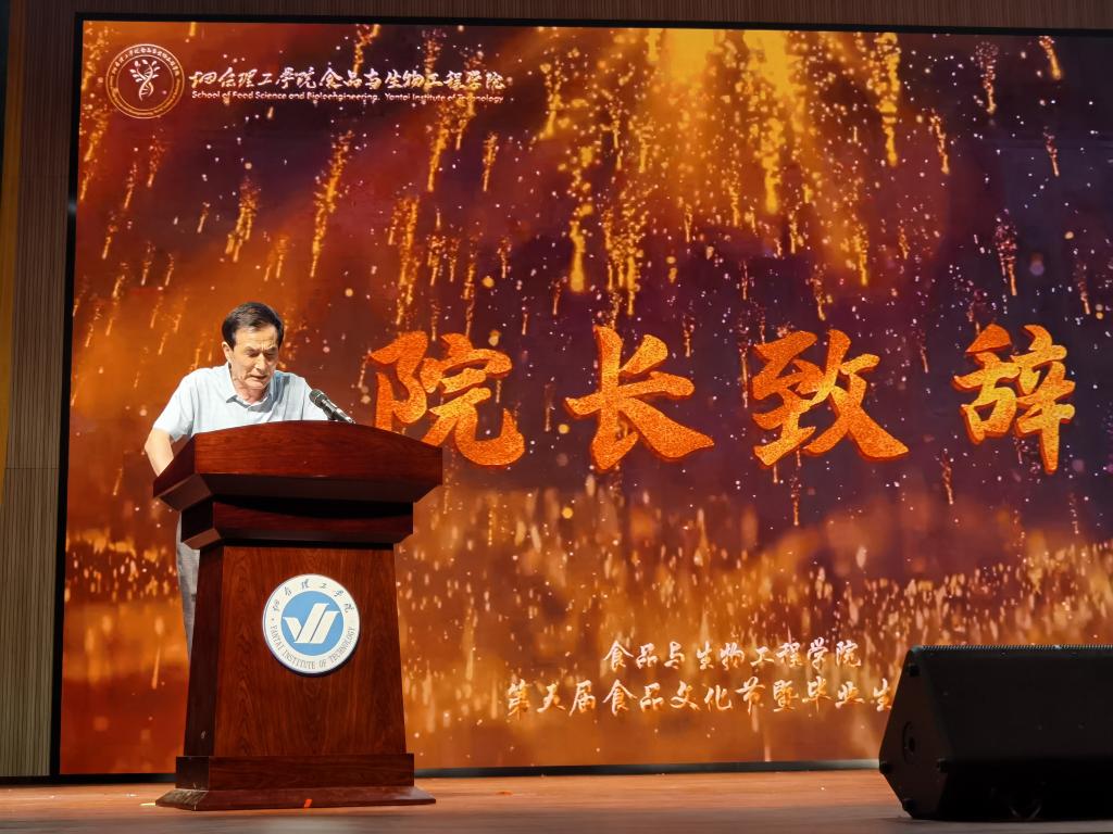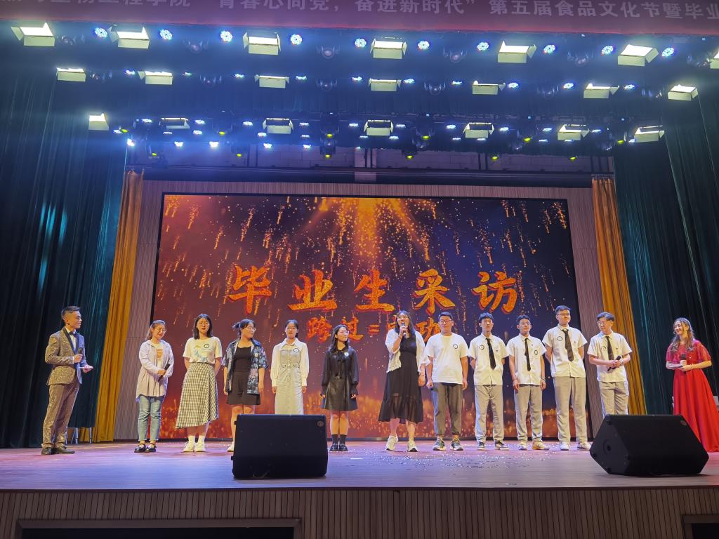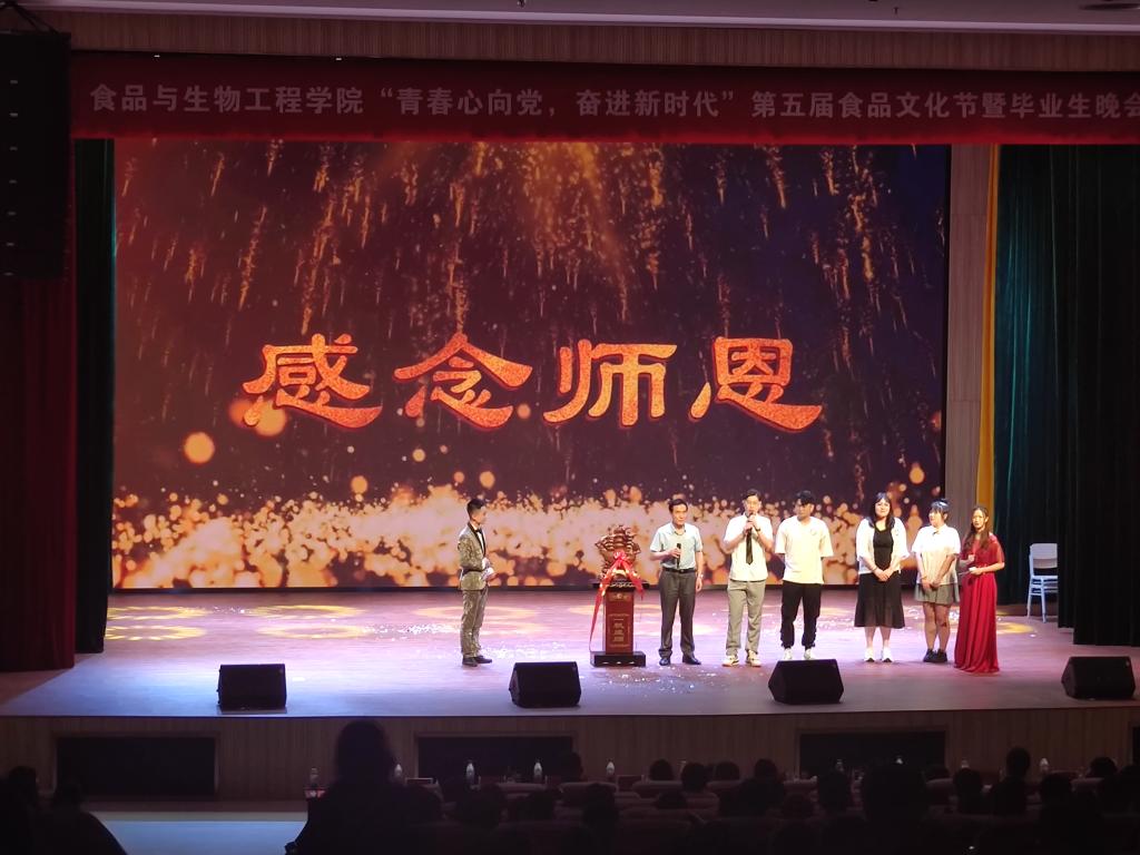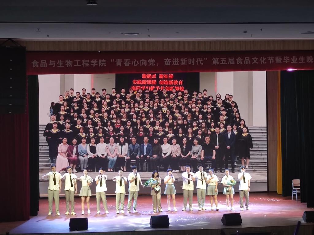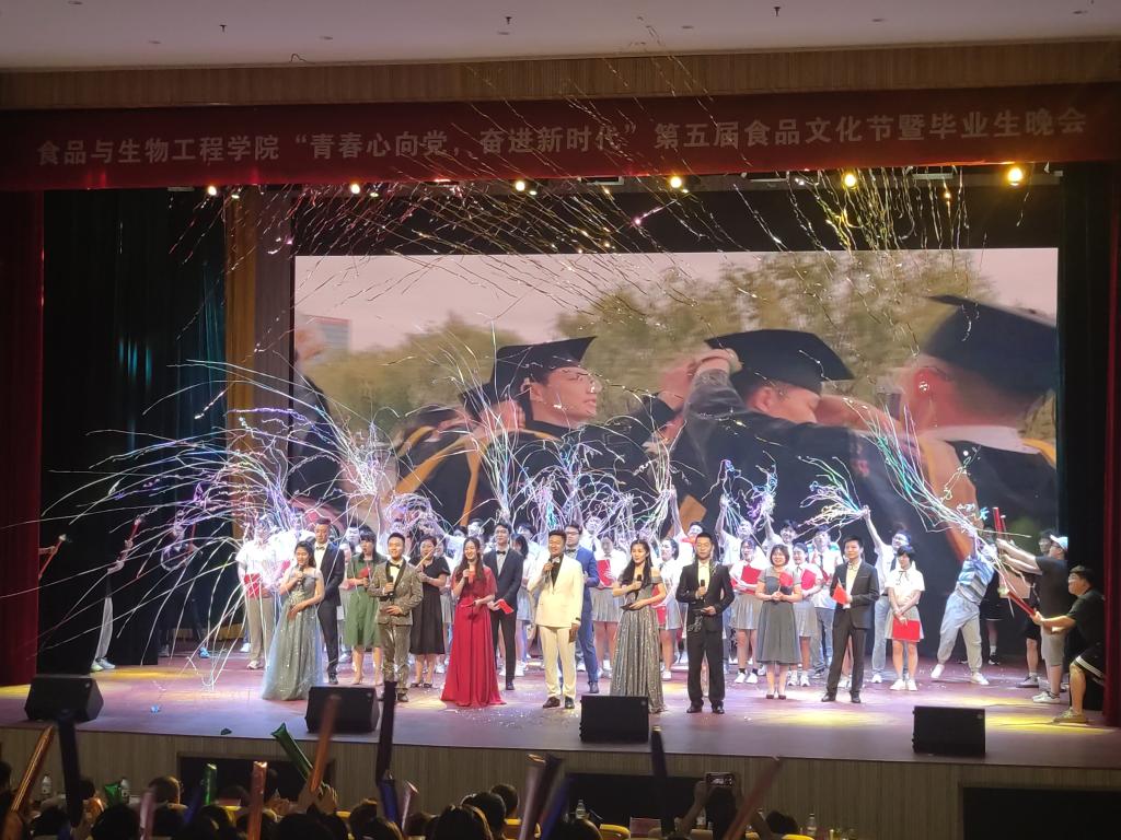 6月15日晚,食品与生物工程学院于三教一楼报告厅举办第五届食品文化节暨毕业生晚会。学校工会主席史毅、学生工作处处长杜娟、组织统战部部长张琼玉、团委书记申海滨、华润置地徐龙勋经理、龙成检测技术有限公司质量部韩娜部长、食品与生物工程学院院长金海珠、专业负责人王进军、党总支副书记赵蓓、副院长高娜、各学院团总支书记及食品与生物工程学院全体师生齐聚一堂,共享盛典。