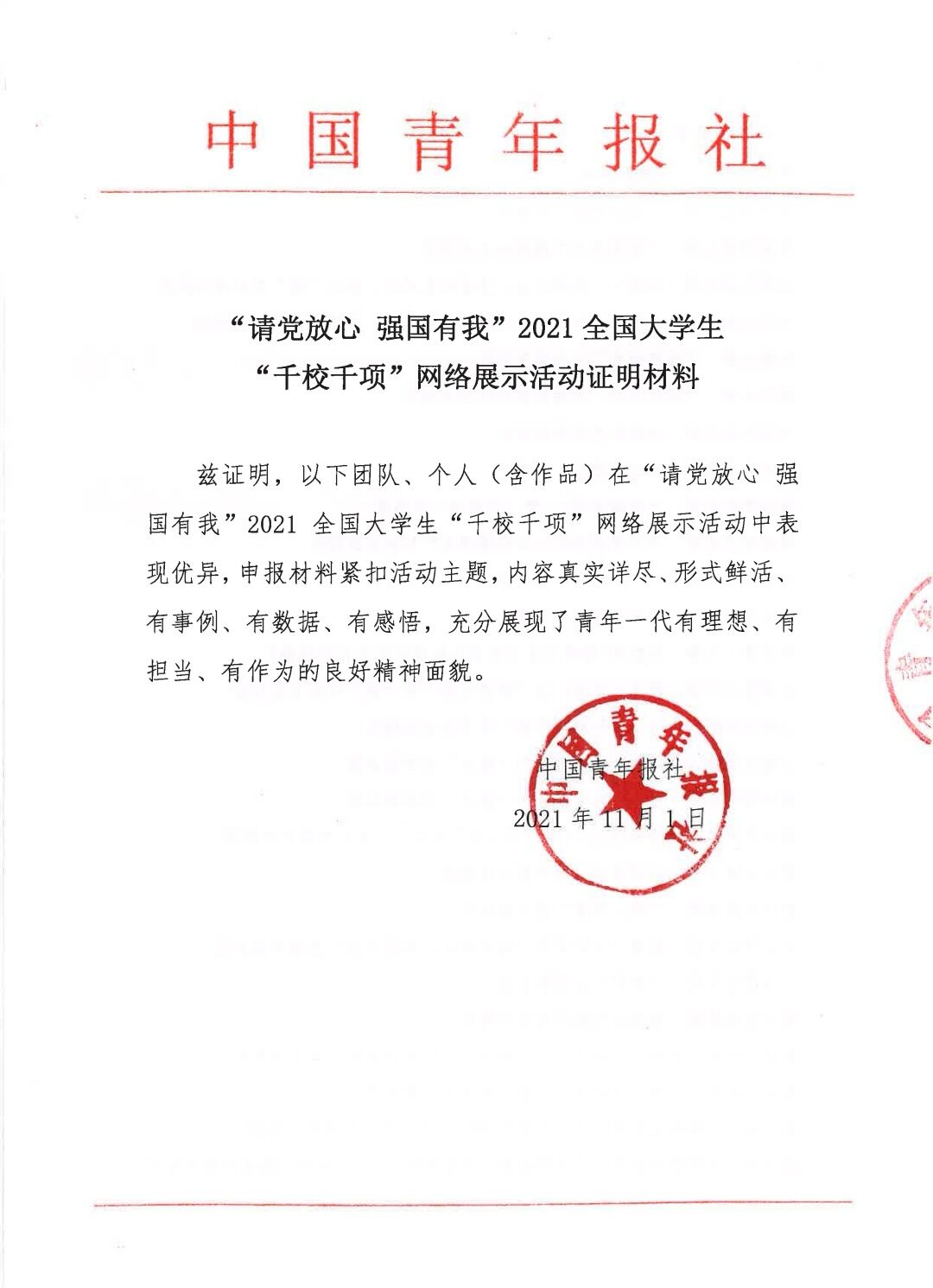 人工智能学院在“‘请党放心 强国有我’2021全国大学生‘千校千项’网络展示活动”中喜获佳绩