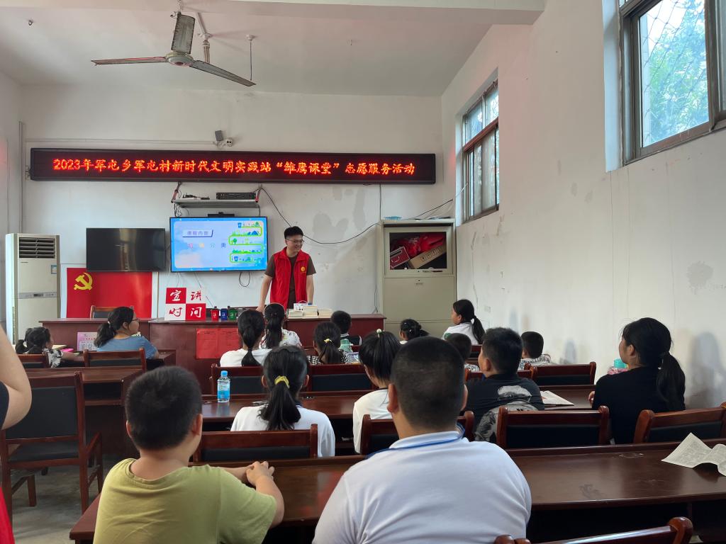 活动前期,实践队来到云尾小学,根据情况对当地学生进行安全教育知识宣讲,同学们对此产生浓厚的兴趣。同学们在社会实践志愿者的带领下,学习了垃圾分类、防溺水的意义,增强了规范投放垃圾意识,纠正了垃圾乱扔的不良行为。志愿者们积极引导学生以行动践行文明环保、资源循环利用的新风范。
