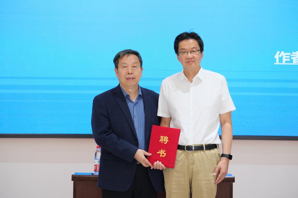 盛国军为戴小栋颁发了烟台理工学院兼职教授的特聘证书。