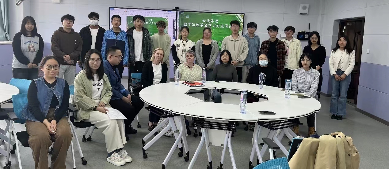 5月9日下午,国际教育学院在科研处的支持下,于综合楼智慧教室举行了一场意义深远的教学法改革与学习方法研讨会。此次会议邀请德国梅泽堡应用技术大学语言学教授Meister和Telepneva作为主讲嘉宾,与国际教育学院全体德语教师、教学管理及学工人员以及即将赴德国深造的同学们共同探讨德语教学的最新理念与方法。
