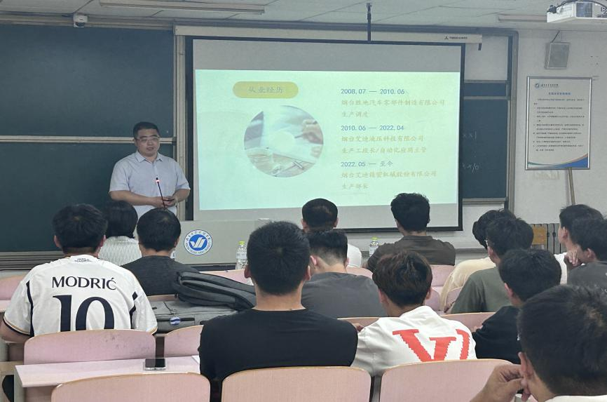 为贯彻落实烟台理工学院“立足行业、面向社会、强化应用、突出实践”的应用型人才培养理念,实现提高教学效果和学生实践应用能力的目标,促进应用型课程建设和教学改革,《机械制造工艺学》课程组特邀请烟台艾迪精密机械股份有限公司工程师于6月16日在二教207召开“企业家进课堂”讲座,为学习《机械制造工艺学》课程的学生结合工程实践经验和企业案例开展项目式教学。此次讲座由机电工程学院袁春静老师主持,由烟台艾迪精密机械股份有限公司生产部部长孙毅龙、生产班班长宋福晨做报告,《机械制造工艺学》课程组老师及学习《机械制造工艺学》课程学生参加。