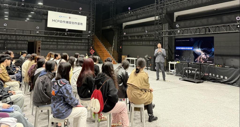 活动伊始,一场系统而深入的技术讲座为同学们构建起动捕技术的知识框架。上海青瞳视觉教育事业部总经理许航以“光学动作捕捉技术”为核心,结合“动捕技术演变—技术原理—应用领域—职业前景”四部分内容,生动梳理了从机械式捕捉到光学追踪的技术演进脉络。他通过通俗语言阐释光学动捕原理——借助红外相机捕捉人体反光标记点,经由算法解析生成高精度三维运动数据,并强调其“高精度、低延迟”的技术优势,正是数字媒体内容生产的核心支撑。