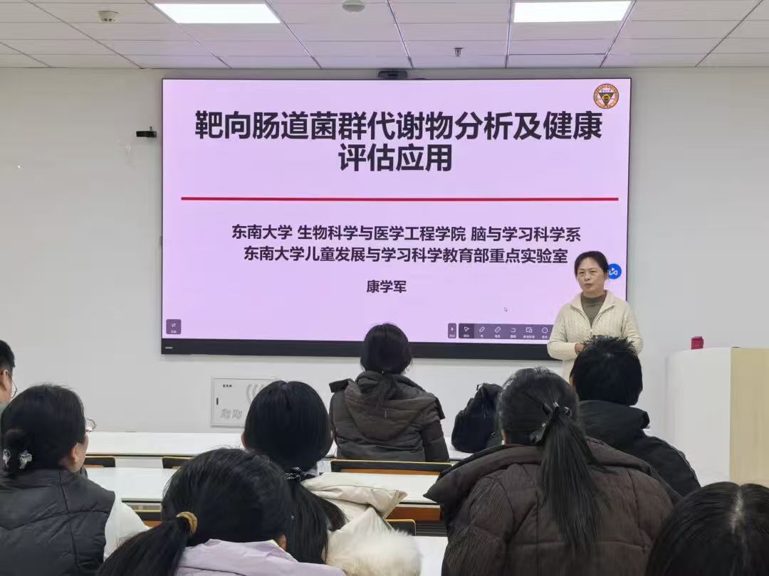 12月4日下午,食品与生物工程学院于综合楼S209学术报告厅成功举办学术报告会。食品与生物工程学院特别邀请到东南大学生物科学与医学工程学院教授、博士生导师康学军教授为学院师生作“靶向肠道菌群代谢物分析及健康评估应用”主题报告。报告会由食品与生物工程学院副院长王跃猛主持,学院部分教师及学生代表参加。