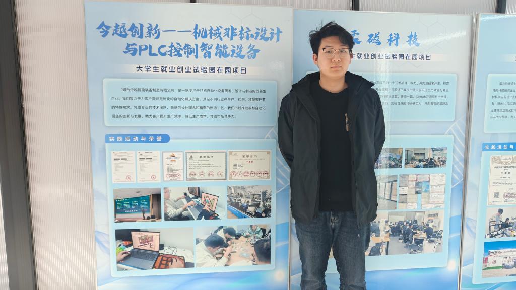 临近毕业,夏侯玉玺直接开启“高能模式”带着团队创业,他依托大学期间积累的专利与项目成果,在学校的支持下创办了今越智能装备制造有限公司,专注工业自动化设备研发,把实验室里的好创意,真正变成市场需要的好产品。创业路上虽然充满挑战,但他始终保持初心,带着团队深耕市场,打磨产品,一步一个脚印稳步前行。